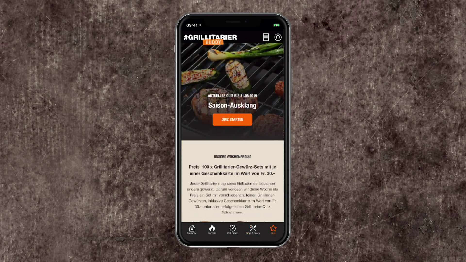 Als digitale und dialogische Verlängerung der Kampagne wurde ein mobiler Grillmeister entwickelt: der Grillitarier-Buddy. Er ist eine progressive Web App mit Features wie Rezept-Inspirator, Grill-Tipps, Grill-Timer und ein Grill-Quiz, das während der Kampagnenzeit über 16 Wochen lief. Dank Gamification-Elementen und unzähligen Inhalten sorgte er dafür, dass der Grilldiskurs in der Schweiz während des ganzen Sommers nie abflachte.